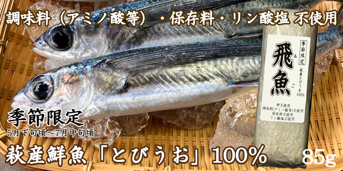 卵・小麦・澱粉不使用!調味料(アミノ酸等)・保存料・リン酸塩不使用!「飛魚蒲鉾」萩産鮮魚とびうお100%【季節限定商品】