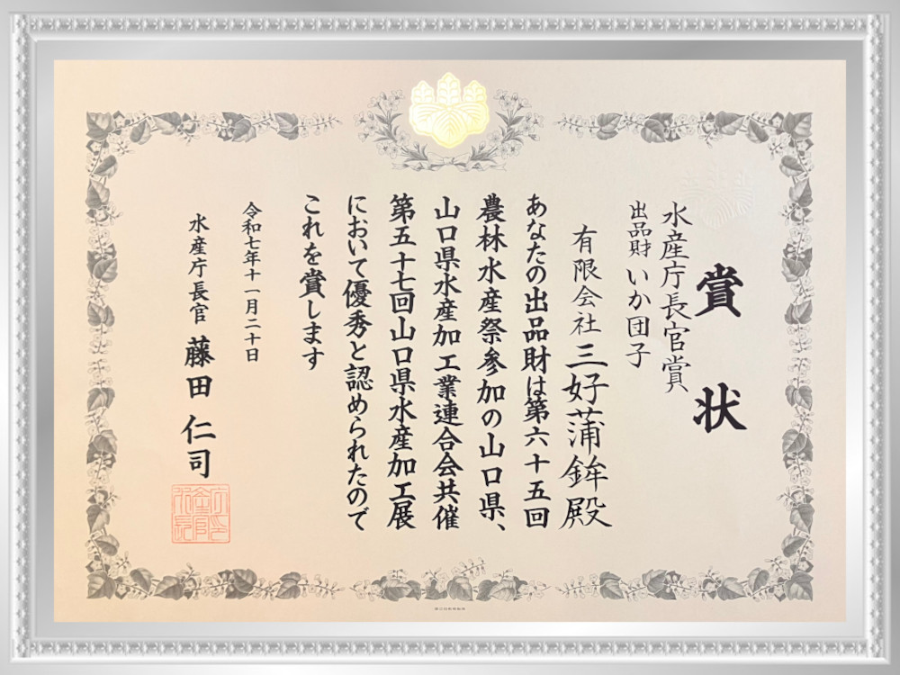 令和7年 第57回山口県水産加工展において、水産庁長官賞を受賞 |