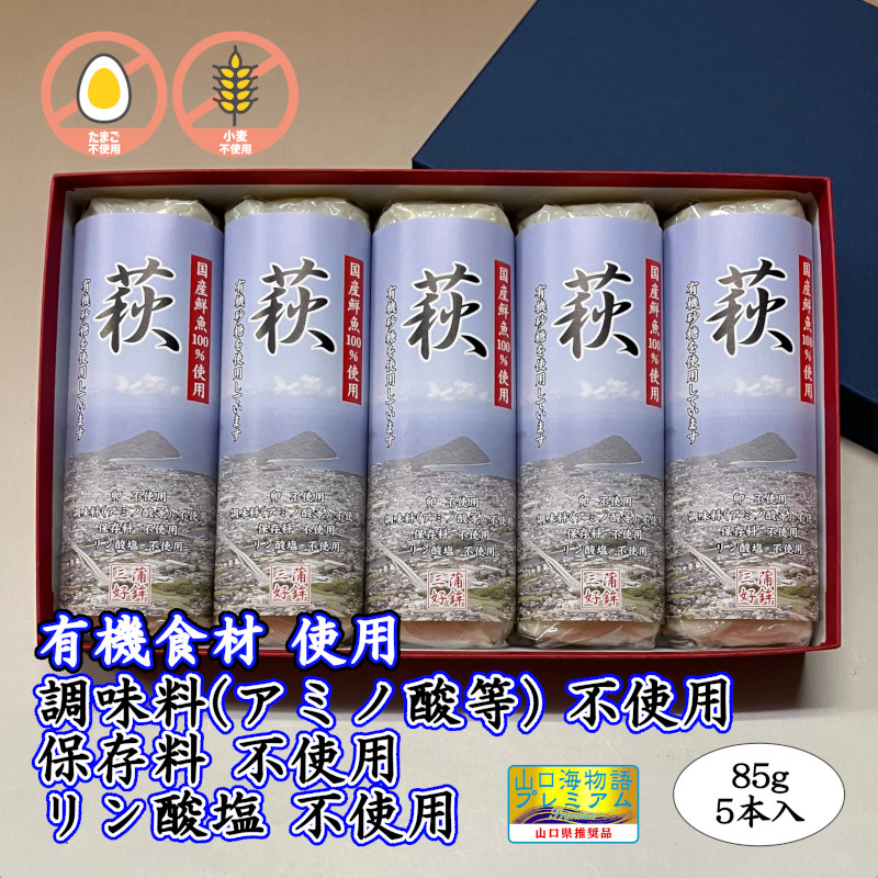 卵・小麦・澱粉不使用!蒲鉾「萩」85g【令和6年度農林水産大臣賞受賞商品】 5本【化粧箱入】